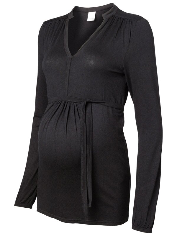 Härligt mjuk och rymlig gravidtop. Band att knyta ovanför magen. Lång ärm med sytt kantband i ärmslut. Lång modell som täcker magen ordentligt.