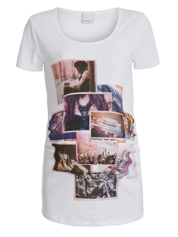 Gravidtop i skön bomull med tryck. Väl tilltagen längd och rynkning i sidan som gör att den sitter snyggt över gravidmagen. Rundad hals och kort ärm.