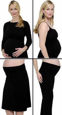 - Kjol: den a-linjeformade kjolen är mångsidig och räcker genom hela graviditeten. Du väljer själv om du vill bära linningen över eller under magen. Längden räcker precis ovanför knäna om den bärs över magen.