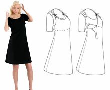 Kortärmad amningsklänning i svart trikå med patenterad dekorativ amningslösning. Klänningen är en kort modell som även kan bäras som tunika över byxor.