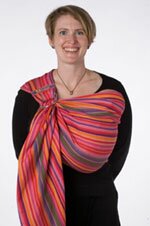 BB-sling är en ringsjal, dvs är en kort sjal som bärs över ena axeln. Ringarna gör att den är väldigt enkel att ta på och av samt att justera. En storlek passar alla och inget knytande krävs!