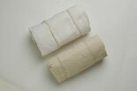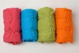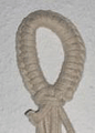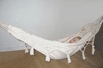 Hängmattan kan antingen hängas inuti en spjälsäng eller fritt. Bilderna visar ändarna på hängmattan och och hur den är upphängd med hjälp av karbinhakar i en spjälsäng. För karbinhakar, se vårt tilläggspaket.